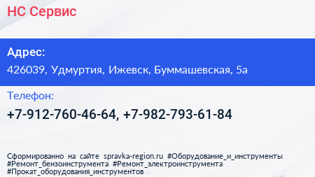 НС Сервис по адресу 426039, Удмуртия, Ижевск, Буммашевская, 5а в дальнейшем Организация, размещена в следующих категориях:
