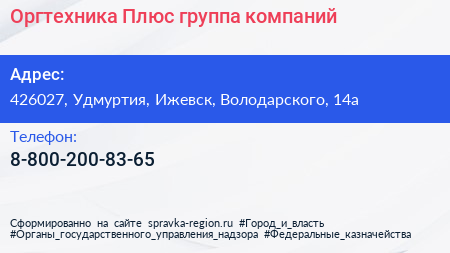 Оргтехника Плюс, группа компаний по адресу 426027, Удмуртия, Ижевск, Володарского, 14а в дальнейшем Организация, размещена в следующих категориях: