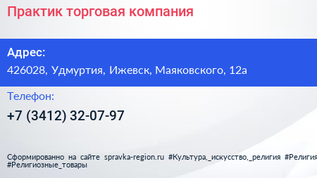 Практик, торговая компания по адресу 426028, Удмуртия, Ижевск, Маяковского, 12а в дальнейшем Организация, размещена в следующих категориях: