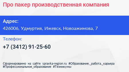 Про пакер, производственная компания по адресу 426006, Удмуртия, Ижевск, Новоажимова, 7 в дальнейшем Организация, размещена в следующих категориях: