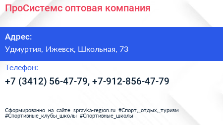 ПроСистемс, оптовая компания по адресу Удмуртия, Ижевск, Школьная, 73 в дальнейшем Организация, размещена в следующих категориях: