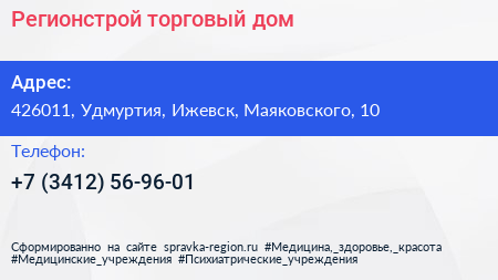 Регионстрой, торговый дом по адресу 426011, Удмуртия, Ижевск, Маяковского, 10 в дальнейшем Организация, размещена в следующих категориях: