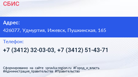 СБИС по адресу 426077, Удмуртия, Ижевск, Пушкинская, 165 в дальнейшем Организация, размещена в следующих категориях: