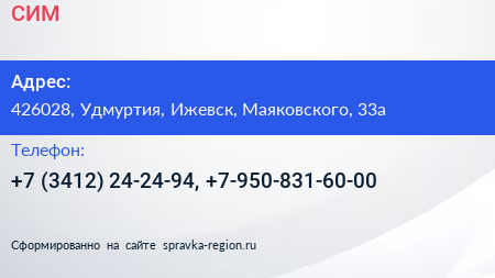 СИМ по адресу 426028, Удмуртия, Ижевск, Маяковского, 33а в дальнейшем Организация, размещена в следующих категориях: