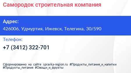 Самородок, строительная компания по адресу 426006, Удмуртия, Ижевск, Телегина, 30/590 в дальнейшем Организация, размещена в следующих категориях: