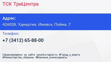 ТСК ТриЦентра по адресу 426028, Удмуртия, Ижевск, Пойма, 7 в дальнейшем Организация, размещена в следующих категориях: