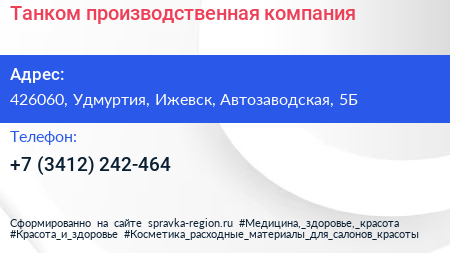 Танком, производственная компания по адресу 426060, Удмуртия, Ижевск, Автозаводская, 5Б в дальнейшем Организация, размещена в следующих категориях: