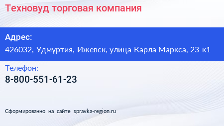 Техновуд, торговая компания по адресу 426032, Удмуртия, Ижевск, улица Карла Маркса, 23 к1 в дальнейшем Организация, размещена в следующих категориях: