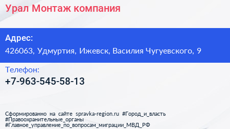 Урал Монтаж, компания по адресу 426063, Удмуртия, Ижевск, Василия Чугуевского, 9 в дальнейшем Организация, размещена в следующих категориях: