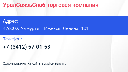 УралСвязьСнаб, торговая компания по адресу 426009, Удмуртия, Ижевск, Ленина, 101 в дальнейшем Организация, размещена в следующих категориях:
