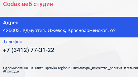Codax, веб-студия по адресу 426003, Удмуртия, Ижевск, Красноармейская, 69 в дальнейшем Организация, размещена в следующих категориях: