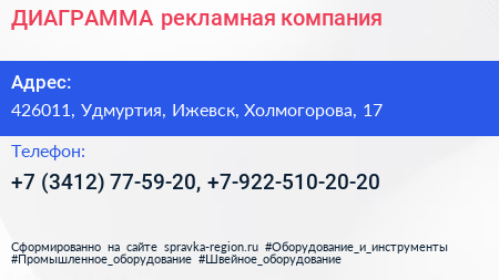 ДИАГРАММА, рекламная компания по адресу 426011, Удмуртия, Ижевск, Холмогорова, 17 в дальнейшем Организация, размещена в следующих категориях: