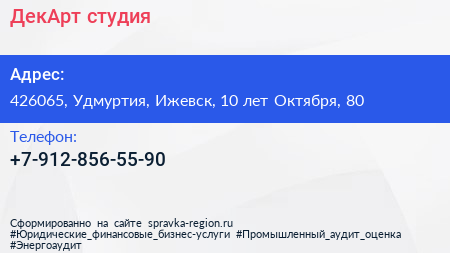 ДекАрт, студия по адресу 426065, Удмуртия, Ижевск, 10 лет Октября, 80 в дальнейшем Организация, размещена в следующих категориях: