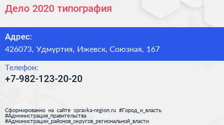 Дело 2020, типография по адресу 426073, Удмуртия, Ижевск, Союзная, 167 в дальнейшем Организация, размещена в следующих категориях: