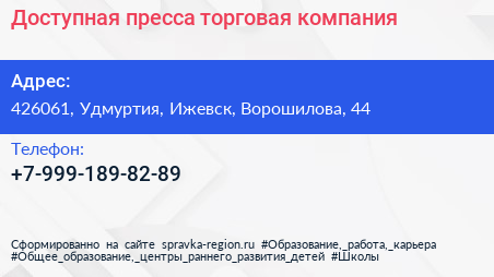 Доступная пресса, торговая компания по адресу 426061, Удмуртия, Ижевск, Ворошилова, 44 в дальнейшем Организация, размещена в следующих категориях: