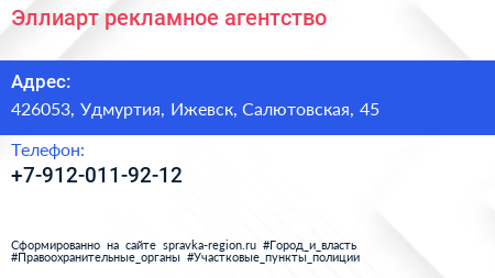 Эллиарт, рекламное агентство по адресу 426053, Удмуртия, Ижевск, Салютовская, 45 в дальнейшем Организация, размещена в следующих категориях: