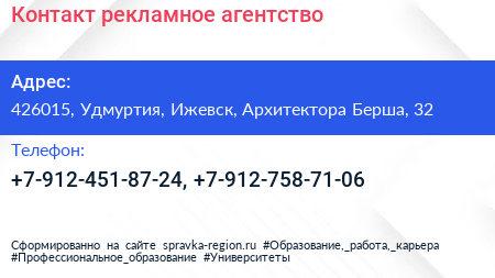 Контакт, рекламное агентство по адресу 426015, Удмуртия, Ижевск, Архитектора Берша, 32 в дальнейшем Организация, размещена в следующих категориях: