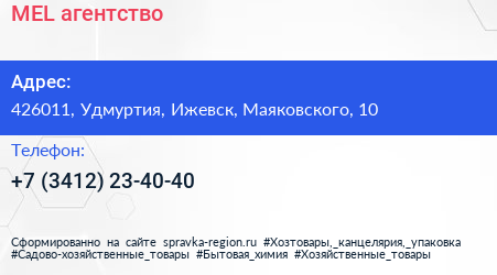 MEL, агентство по адресу 426011, Удмуртия, Ижевск, Маяковского, 10 в дальнейшем Организация, размещена в следующих категориях:
