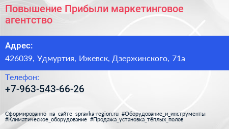 Повышение Прибыли, маркетинговое агентство по адресу 426039, Удмуртия, Ижевск, Дзержинского, 71а в дальнейшем Организация, размещена в следующих категориях: