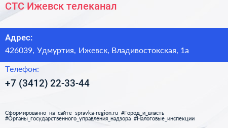 СТС-Ижевск, телеканал по адресу 426039, Удмуртия, Ижевск, Владивостокская, 1а в дальнейшем Организация, размещена в следующих категориях: