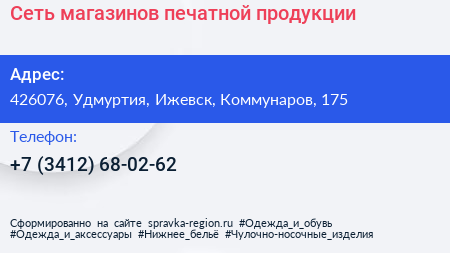 Сеть магазинов печатной продукции по адресу 426076, Удмуртия, Ижевск, Коммунаров, 175 в дальнейшем Организация, размещена в следующих категориях: