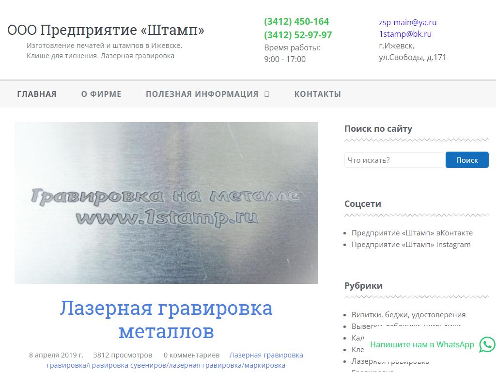 Штамп, предприятие по адресу 426008, Удмуртия, Ижевск, Свободы, 171 в дальнейшем Организация, размещена в следующих категориях:
