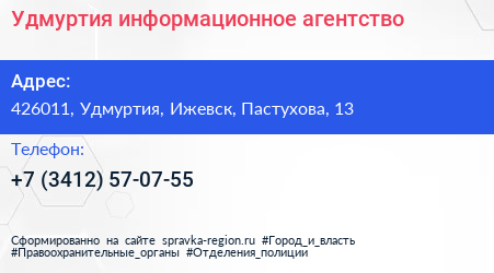 Удмуртия, информационное агентство по адресу 426011, Удмуртия, Ижевск, Пастухова, 13 в дальнейшем Организация, размещена в следующих категориях: