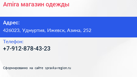 Amira, магазин одежды по адресу 426023, Удмуртия, Ижевск, Азина, 252 в дальнейшем Организация, размещена в следующих категориях:
