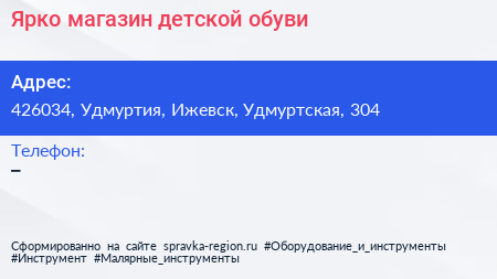 Ярко, магазин детской обуви по адресу 426034, Удмуртия, Ижевск, Удмуртская, 304 в дальнейшем Организация, размещена в следующих категориях: