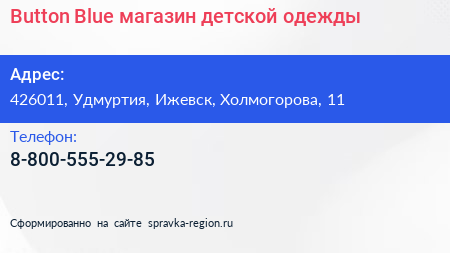 Button Blue, магазин детской одежды по адресу 426011, Удмуртия, Ижевск, Холмогорова, 11 в дальнейшем Организация, размещена в следующих категориях: