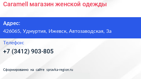 Caramell, магазин женской одежды по адресу 426065, Удмуртия, Ижевск, Автозаводская, 3а в дальнейшем Организация, размещена в следующих категориях: