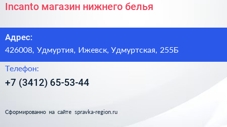 Incanto, магазин нижнего белья по адресу 426008, Удмуртия, Ижевск, Удмуртская, 255Б в дальнейшем Организация, размещена в следующих категориях: