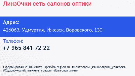 ЛинзОчки, сеть салонов оптики по адресу 426063, Удмуртия, Ижевск, Воровского, 130 в дальнейшем Организация, размещена в следующих категориях: