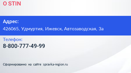 O`STIN по адресу 426065, Удмуртия, Ижевск, Автозаводская, 3а в дальнейшем Организация, размещена в следующих категориях: