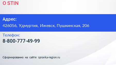 O`STIN по адресу 426056, Удмуртия, Ижевск, Пушкинская, 206 в дальнейшем Организация, размещена в следующих категориях: