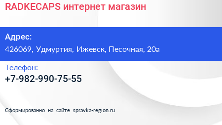 RADKECAPS, интернет-магазин по адресу 426069, Удмуртия, Ижевск, Песочная, 20а в дальнейшем Организация, размещена в следующих категориях: