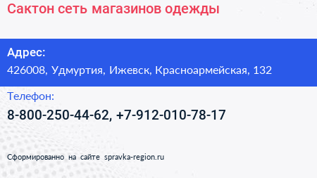 Сактон, сеть магазинов одежды по адресу 426008, Удмуртия, Ижевск, Красноармейская, 132 в дальнейшем Организация, размещена в следующих категориях: