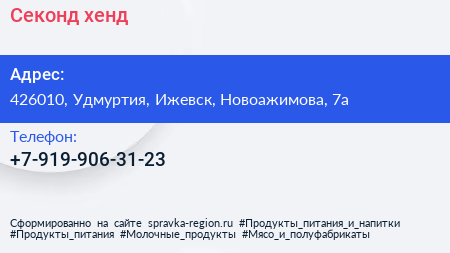 Секонд-хенд по адресу 426010, Удмуртия, Ижевск, Новоажимова, 7а в дальнейшем Организация, размещена в следующих категориях: