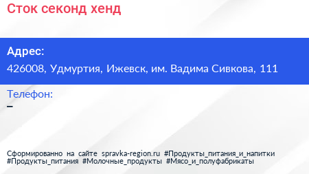 Сток, секонд-хенд по адресу 426008, Удмуртия, Ижевск, им. Вадима Сивкова, 111 в дальнейшем Организация, размещена в следующих категориях: