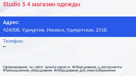 Studio 5.4., магазин одежды по адресу 426008, Удмуртия, Ижевск, Удмуртская, 255Б в дальнейшем Организация, размещена в следующих категориях: