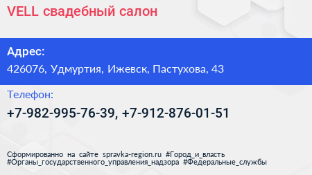 VELL, свадебный салон по адресу 426076, Удмуртия, Ижевск, Пастухова, 43 в дальнейшем Организация, размещена в следующих категориях: