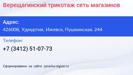 Верещагинский трикотаж, сеть магазинов по адресу 426008, Удмуртия, Ижевск, Пушкинская, 244 в дальнейшем Организация, размещена в следующих категориях: