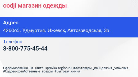 oodji, магазин одежды по адресу 426065, Удмуртия, Ижевск, Автозаводская, 3а в дальнейшем Организация, размещена в следующих категориях: