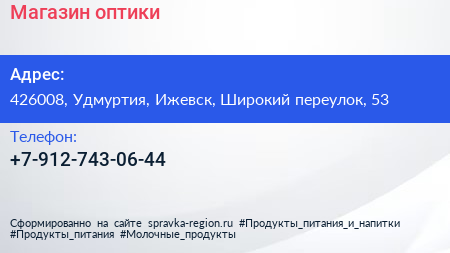 Магазин оптики по адресу 426008, Удмуртия, Ижевск, Широкий переулок, 53 в дальнейшем Организация, размещена в следующих категориях: