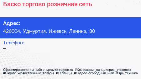 Баско, торгово-розничная сеть по адресу 426004, Удмуртия, Ижевск, Ленина, 80 в дальнейшем Организация, размещена в следующих категориях: