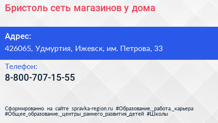 Бристоль, сеть магазинов у дома по адресу 426065, Удмуртия, Ижевск, им. Петрова, 33 в дальнейшем Организация, размещена в следующих категориях: