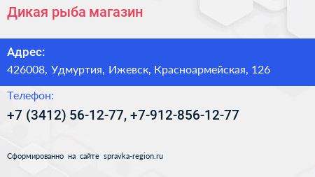 Дикая рыба, магазин по адресу 426008, Удмуртия, Ижевск, Красноармейская, 126 в дальнейшем Организация, размещена в следующих категориях: