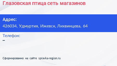 Глазовская птица, сеть магазинов по адресу 426034, Удмуртия, Ижевск, Лихвинцева, 64 в дальнейшем Организация, размещена в следующих категориях: