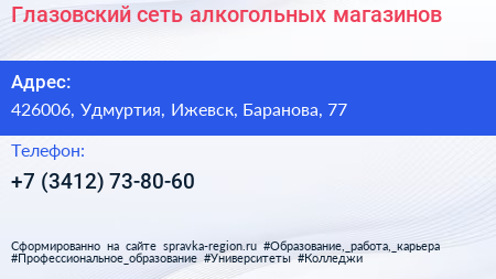 Глазовский, сеть алкогольных магазинов по адресу 426006, Удмуртия, Ижевск, Баранова, 77 в дальнейшем Организация, размещена в следующих категориях:
