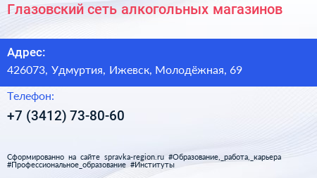 Глазовский, сеть алкогольных магазинов по адресу 426073, Удмуртия, Ижевск, Молодёжная, 69 в дальнейшем Организация, размещена в следующих категориях: